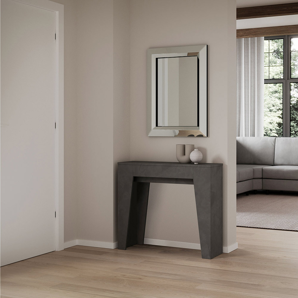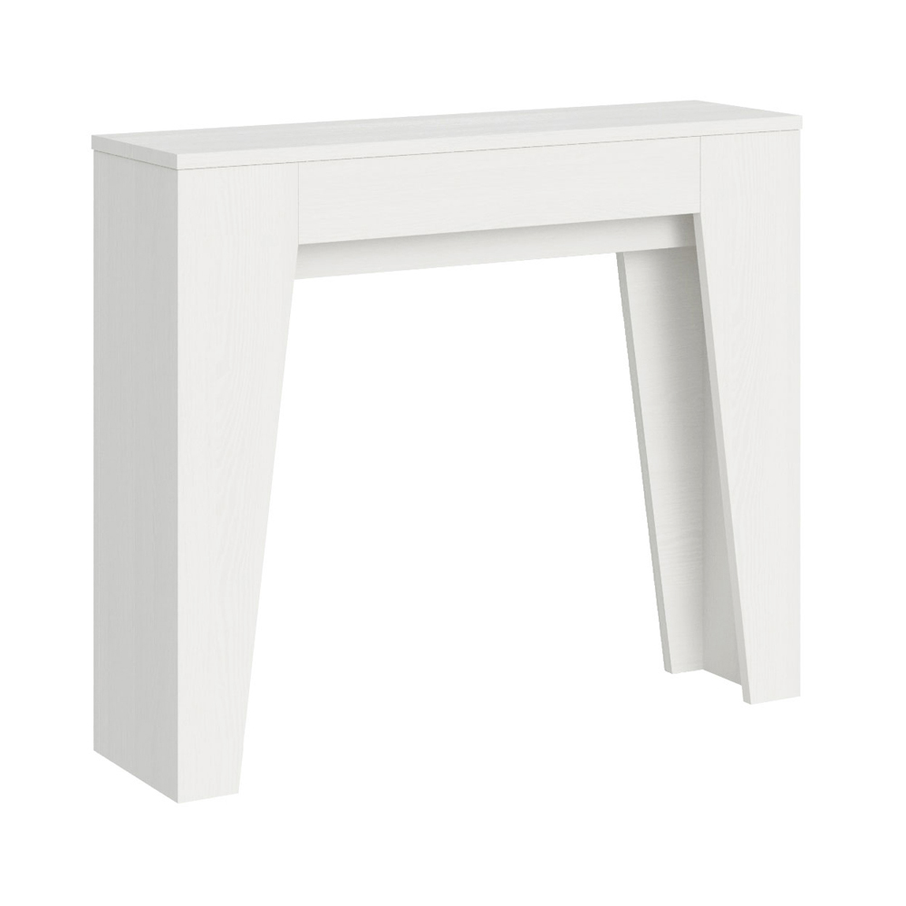 Extendable console table made ofĀ melamine-faced wood, entirely Made in Italy.Ā The structure ĆØ designed so that it does not require separate central supports or feet when ĆØ fully open, thanks to the integrated central foot.Ā