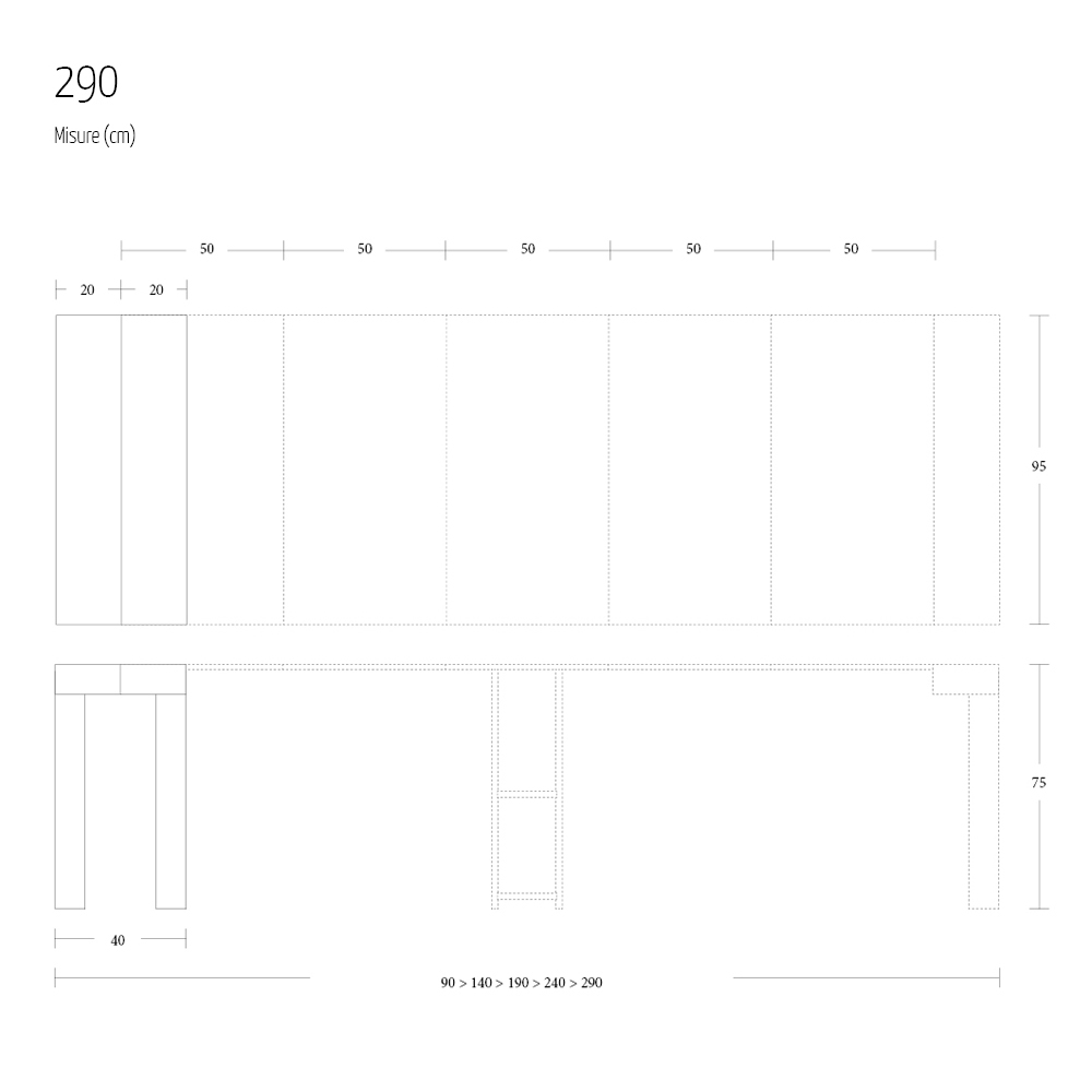 Extendable Console up to 290 cm in Made in Italy Melamine Wood
