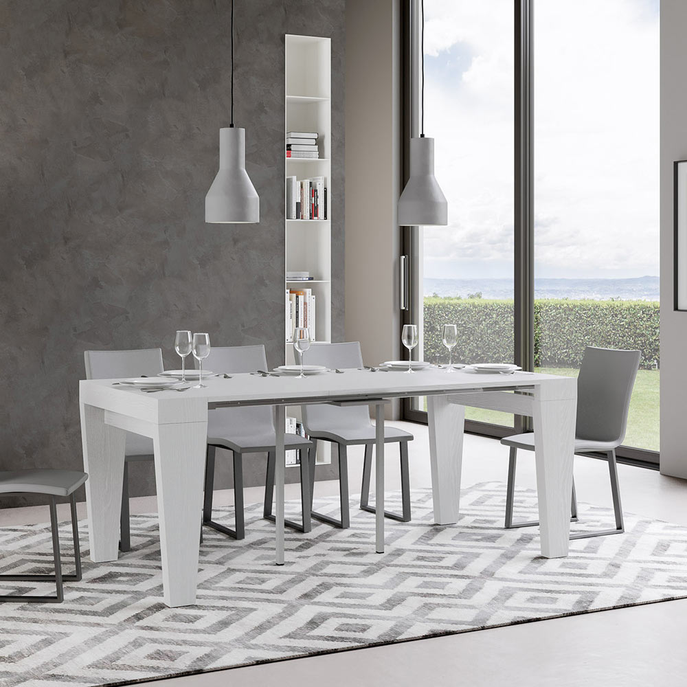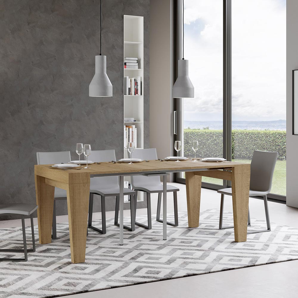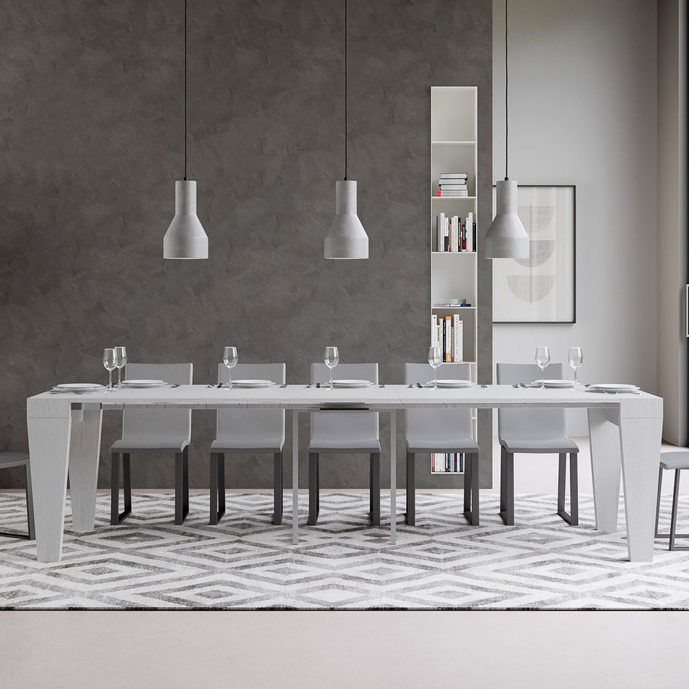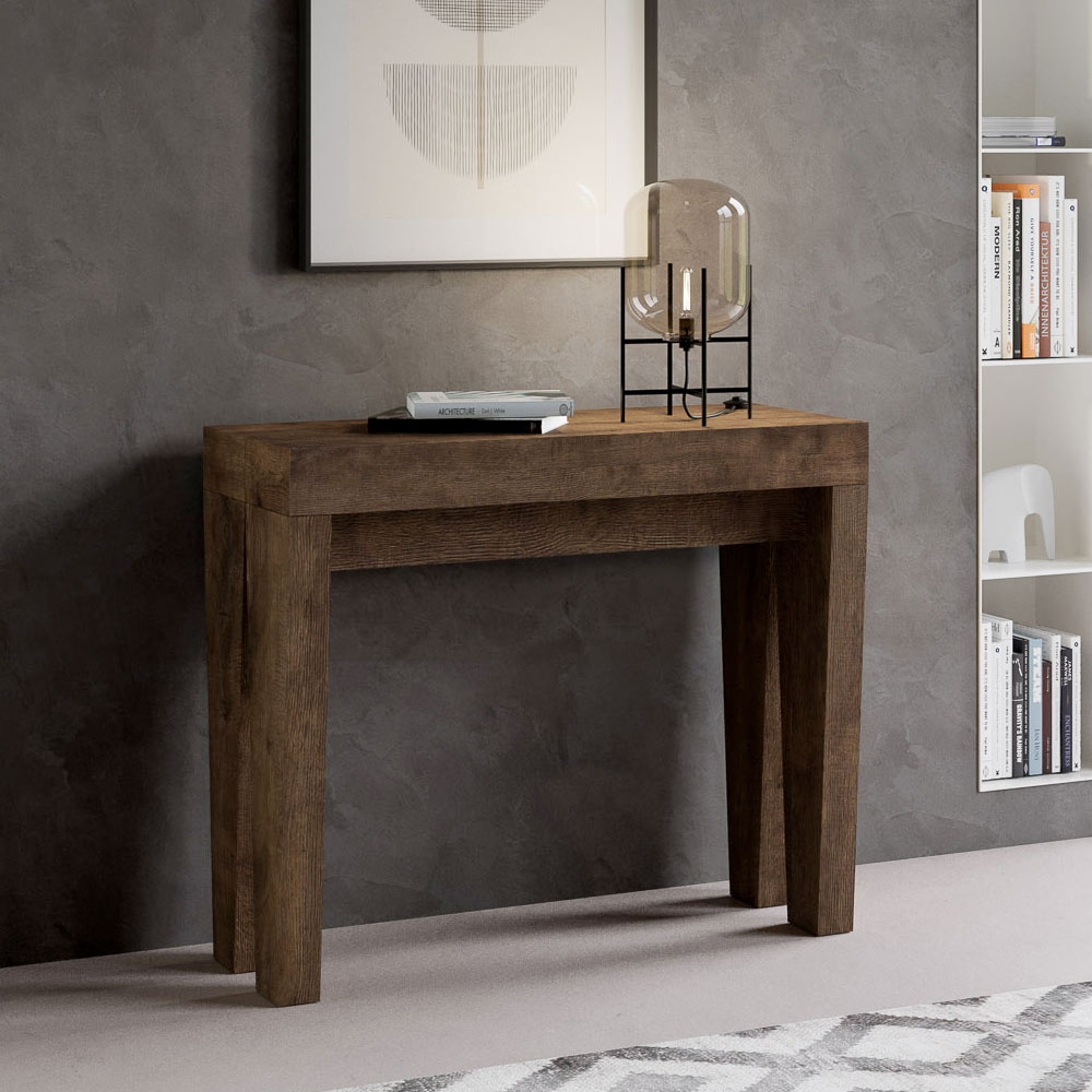 This extendable console table è ideal for optimizing space: compact when closed, it easily extends to provide a work surface or for a dinner party, becoming a symbol of versatility and adaptability. È designed for those looking for a combination of practicalityà and sophisticated style in their furniture.