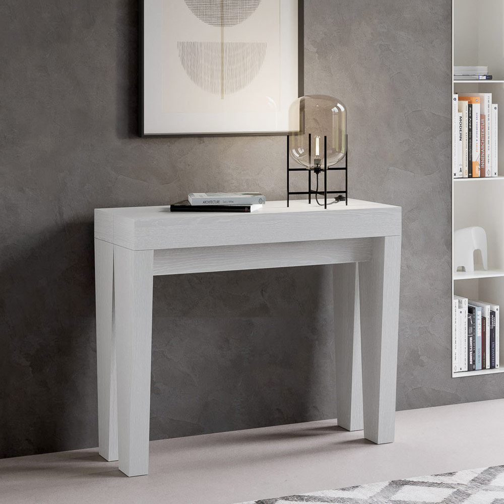. Extendable console table made ofĀ melamine-faced melamine-faced wood,Ā entirely Made in Italy.Ā The console table comes with a two-rest central support that ensures its own functionality and stability when the top ĆØ extended.