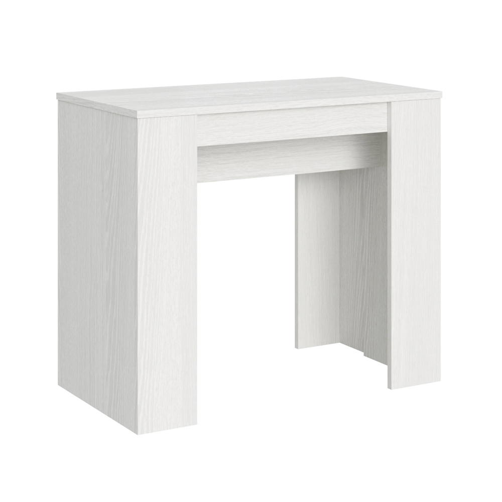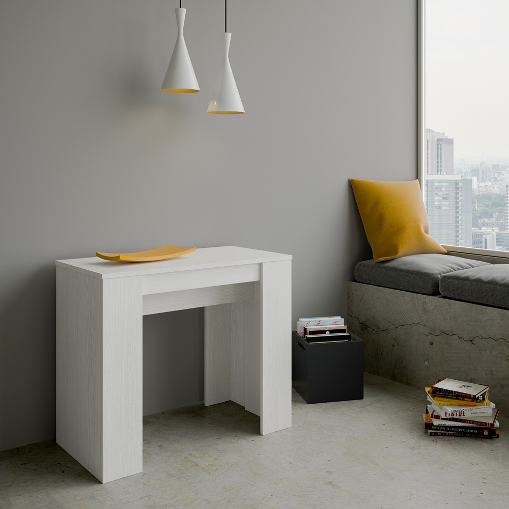 This extending console table ĆØ a masterpiece of contemporary design and intuitive functionality. The furnished wood top and sidesĀ offer a bright and open feel, ideal for those seeking to create a space that is both aerated and modern. Its essential and clean aesthetic makes it suitable for any environment, perfect for fitting into a minimalist design or as a contrast in a more colorful and vivid one.
