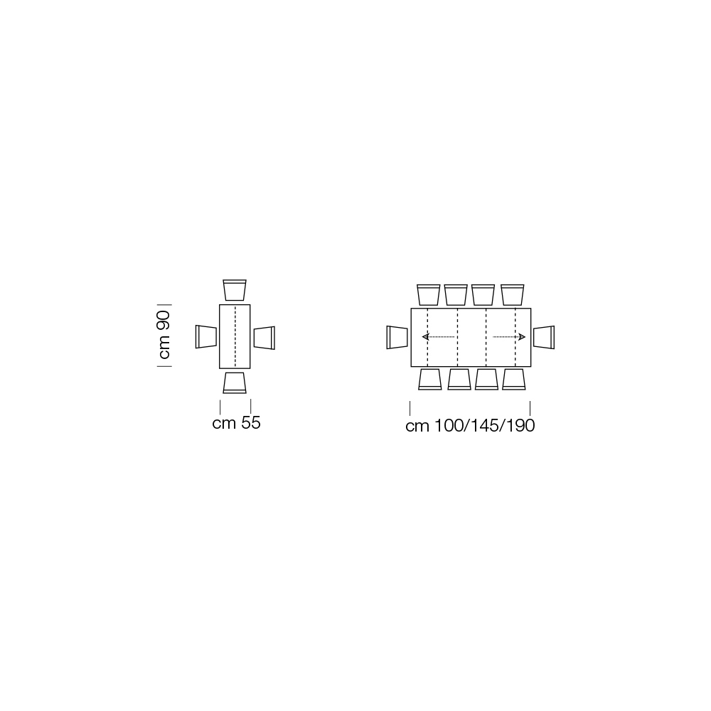 - L 55 (325) x D 90 x H 77 cm 16-seater extendable with six external extensions of 45cm each;