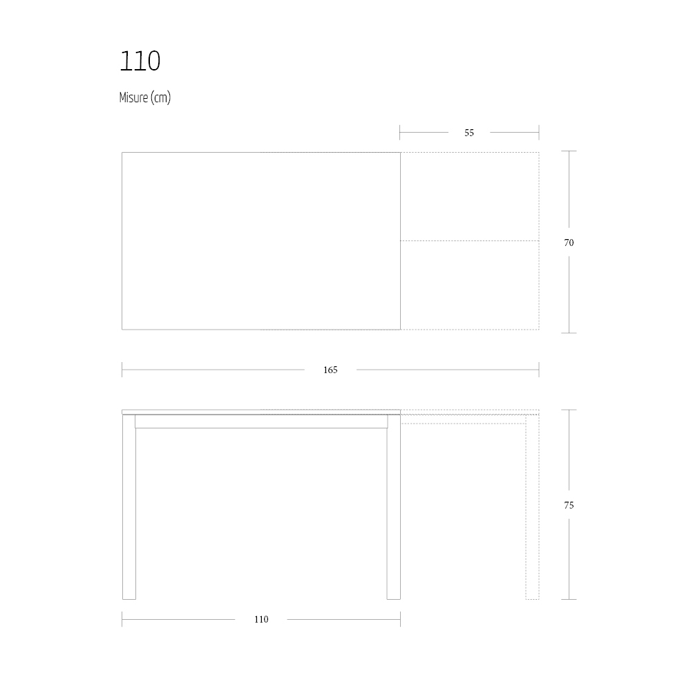 Available sizes:- L 110(165) XP 70 H 75 cm - extends from 55 cm;