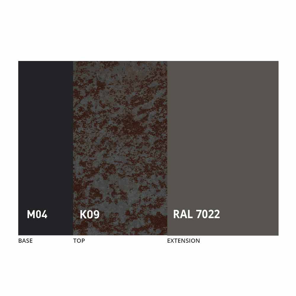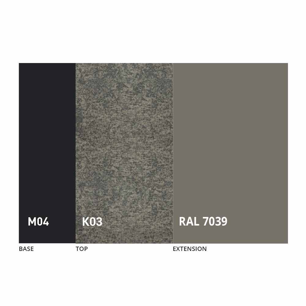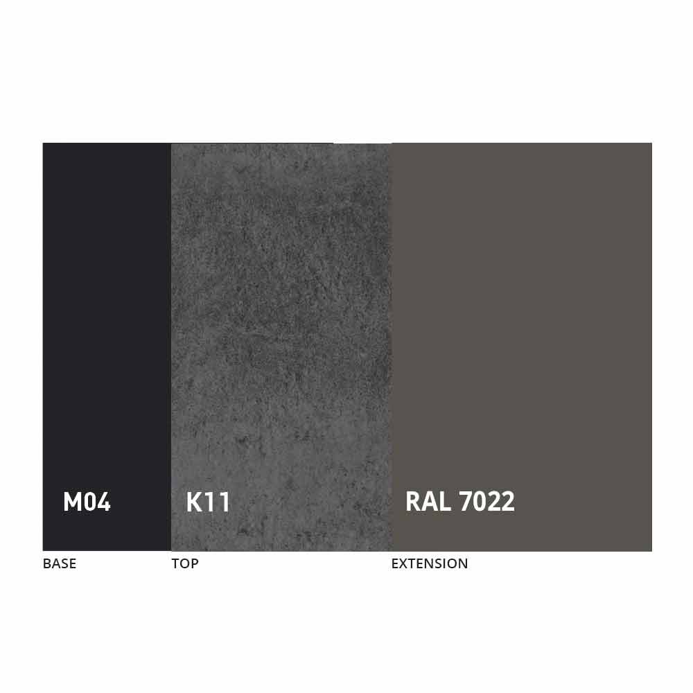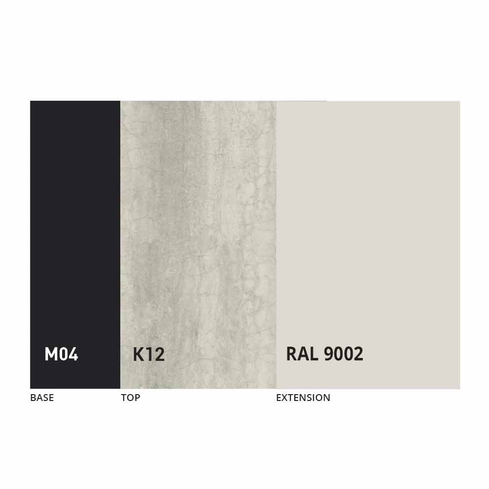 The top and base of the table can be customized with different materials and sample finishes or RAL lacquering. For information, contact us using the appropriate " Request Information" form.