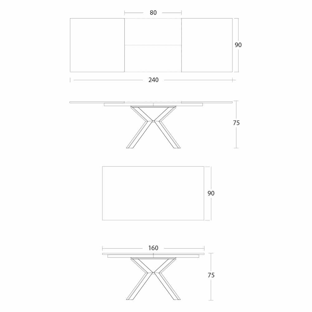 • L 160-240 x D 90 x H 75cm