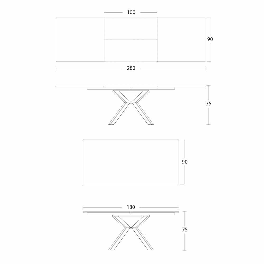 • W 180-280 x W 90 x H 75cm