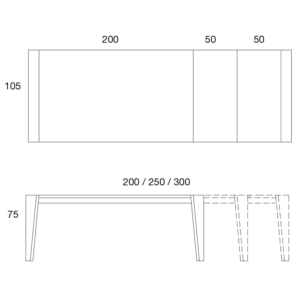 • L 200-250-300 x D 105 x H 75 cm - 2 extensions