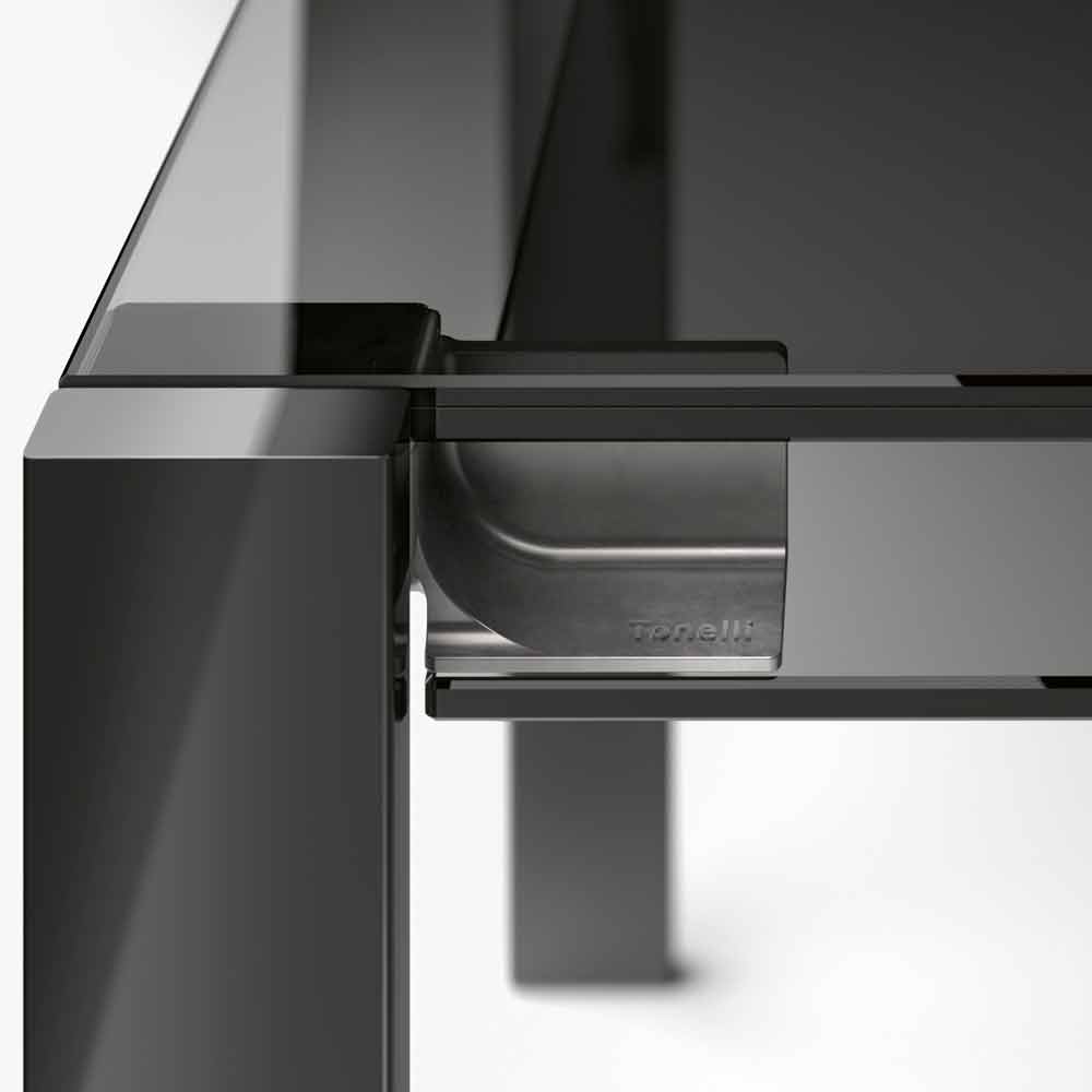 extending the top up to 280 cm with the two side extensions that can be opened with a simple gesture thanks to the special hinge system in cast