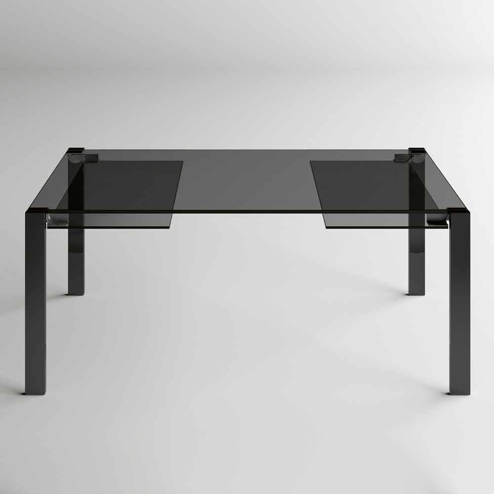 Extendable dining table up to 280 cm with glass top and metal base Made in Italy.