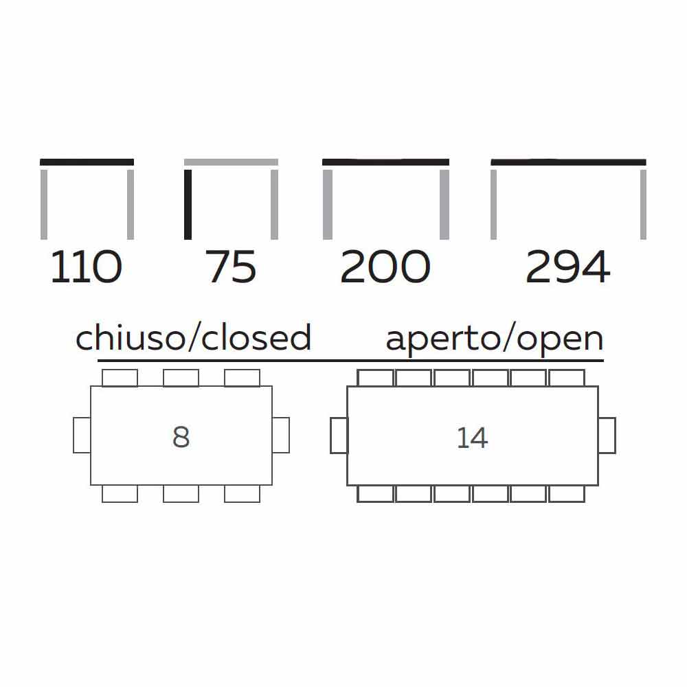 stoneware often 2.5 cm (6 mm stoneware, 19 mm MDF) which, thanks to the presence of 2 removable extensions of 47 cm, can reach a length of 294 cm allowing it to accommodate up to 14 people for lunches and dinners with friends.