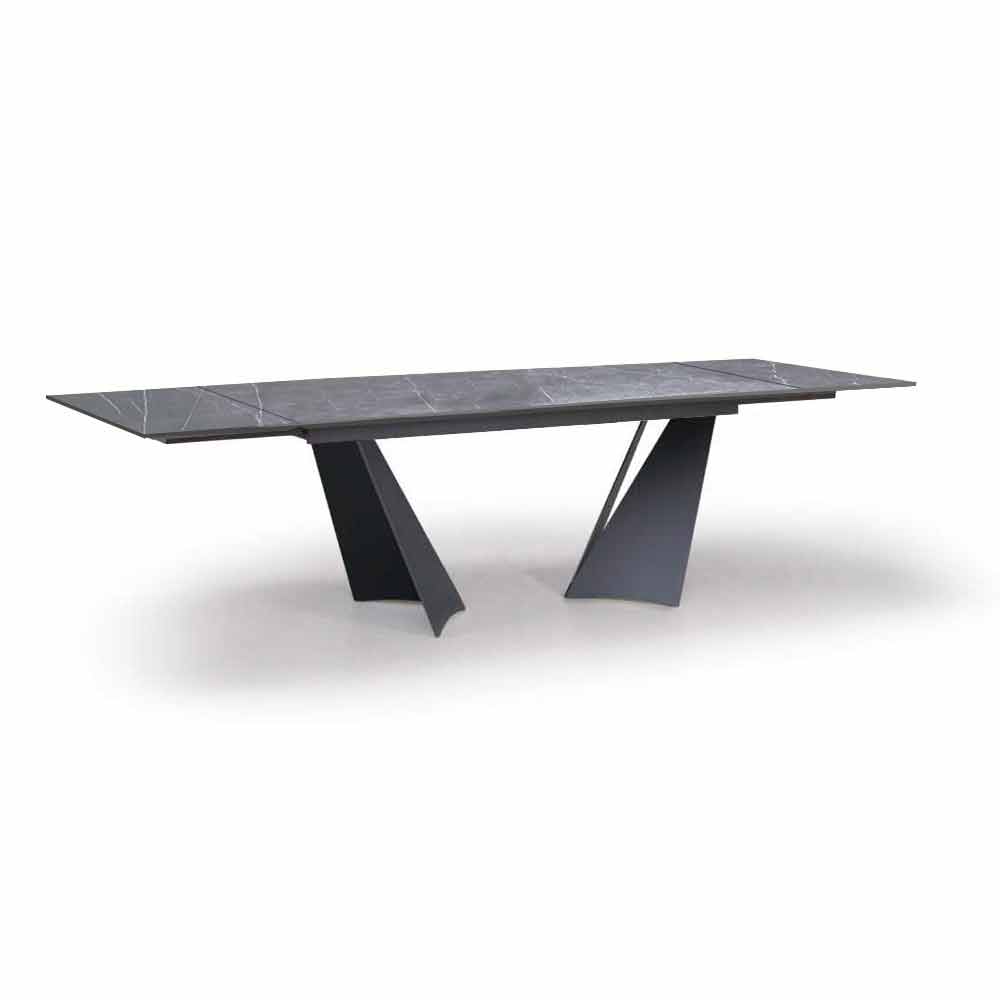 Extendable design dining table in stoneware and metal, luxury item Made in Italy.