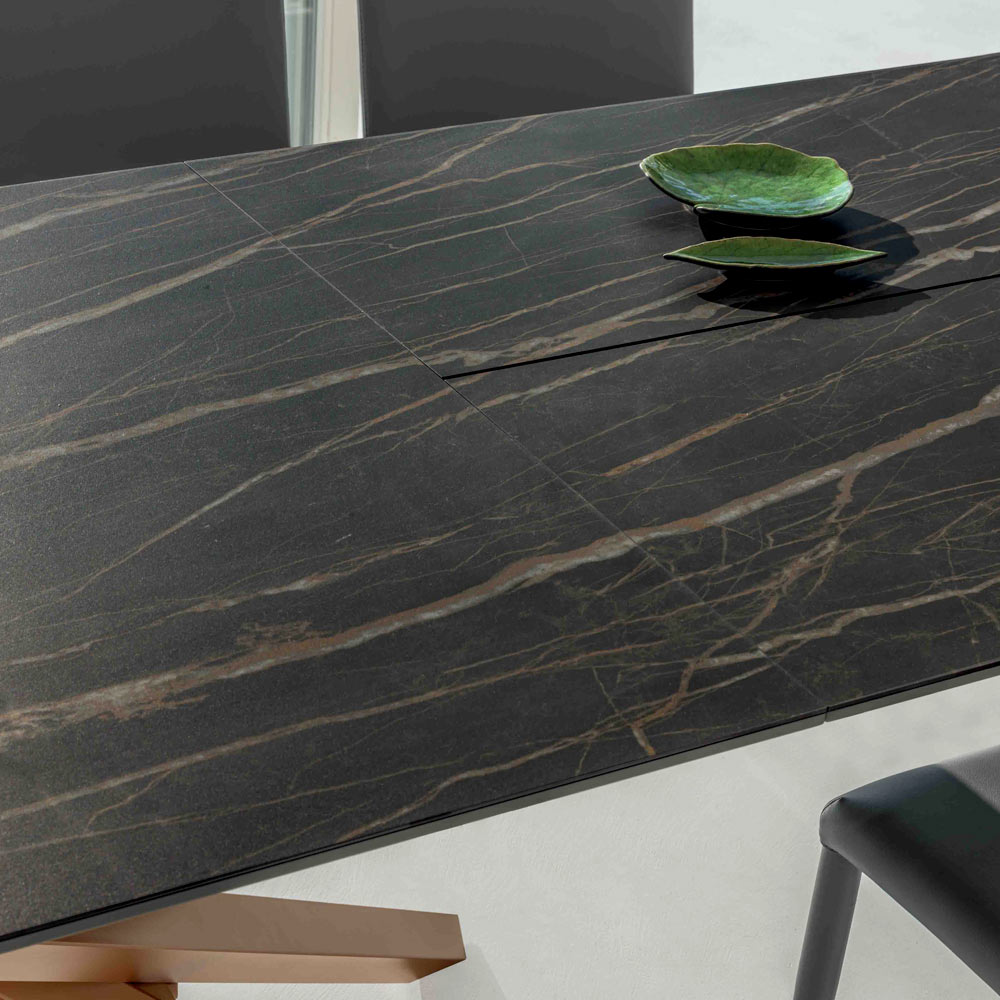 matt noir desir ceramic top, matt noir desir ceramic extension with continuous grain and embossed copper finish metal base