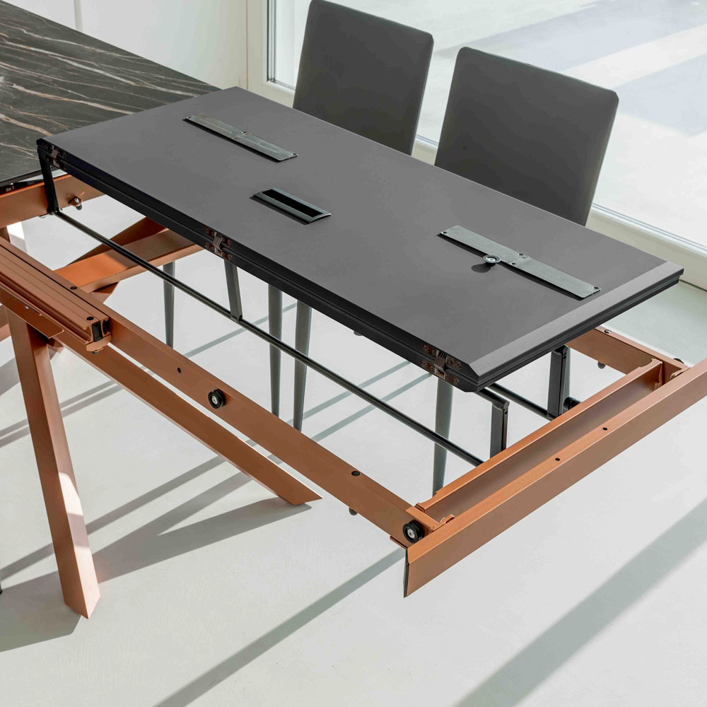 The table represents the perfect synthesis between cutting-edge engineering and aesthetic design. This is not simply an extendable table, but a functional work of art, designed for those who do not want to compromise between style and space.