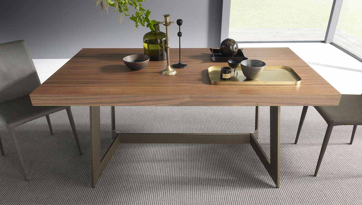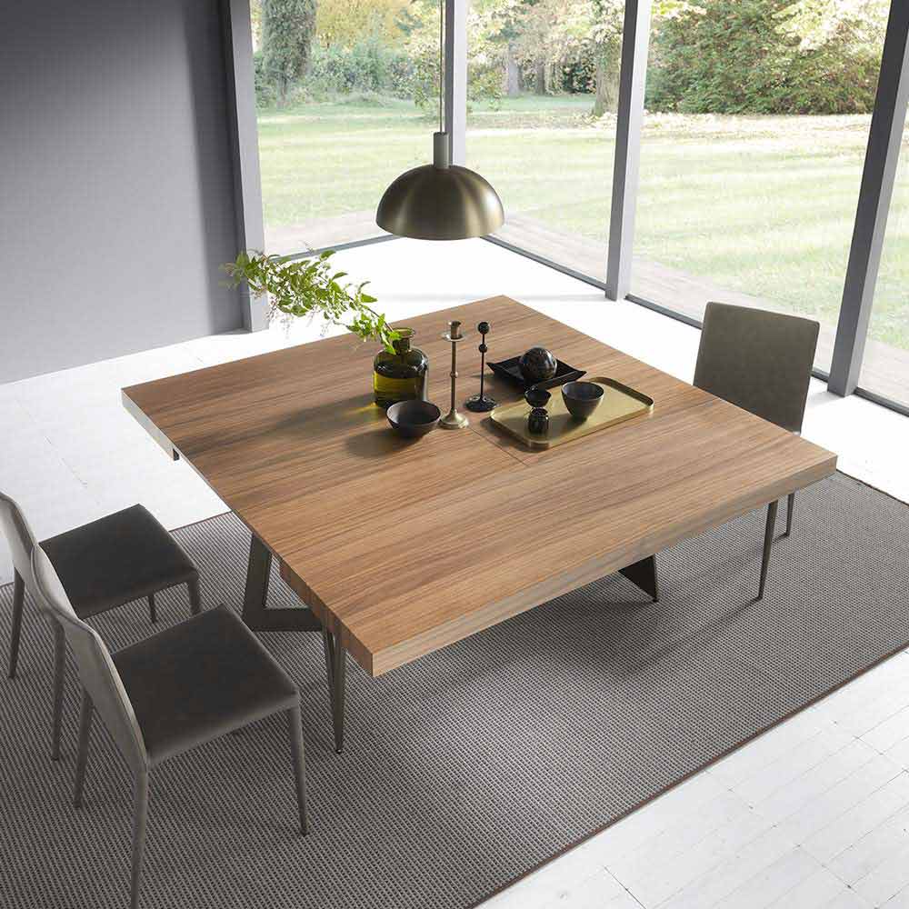 Its peculiar feature consists in the way it expands from a rectangular to a square table to accommodate from 4 to 8 people.