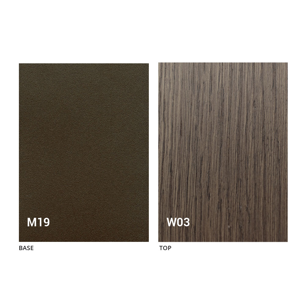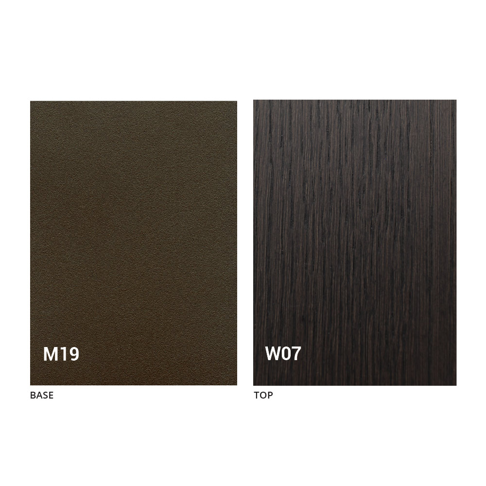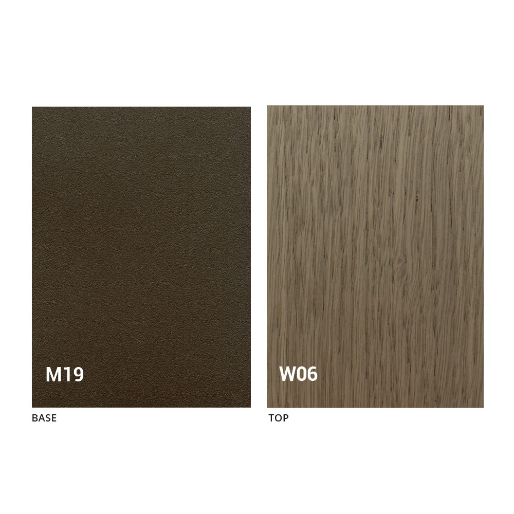 The top and the base of the table can be customized with different sample finishes. For information, contact us using the appropriate