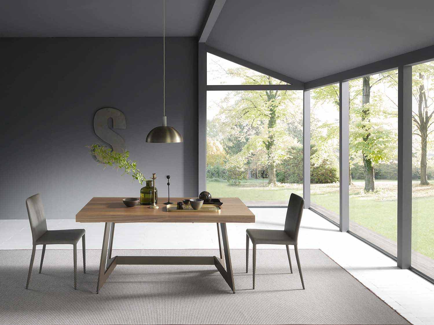 Extendable dining table with wooden top and metal structure Made in Italy.