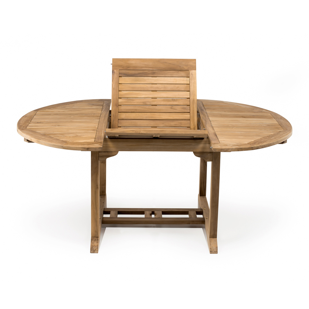 Extendable outdoor table made of natural teak wood. The teak wood used is of Indonesian origin , sourced from controlled and sustainable forests (INDONESIAN LEGAL WOOD). It is an extremely durable , stable material, resistant to atmospheric agents, fungi, pests and insects. It contains high levels of natural oils that make it resistant and limit the absorption of moisture .