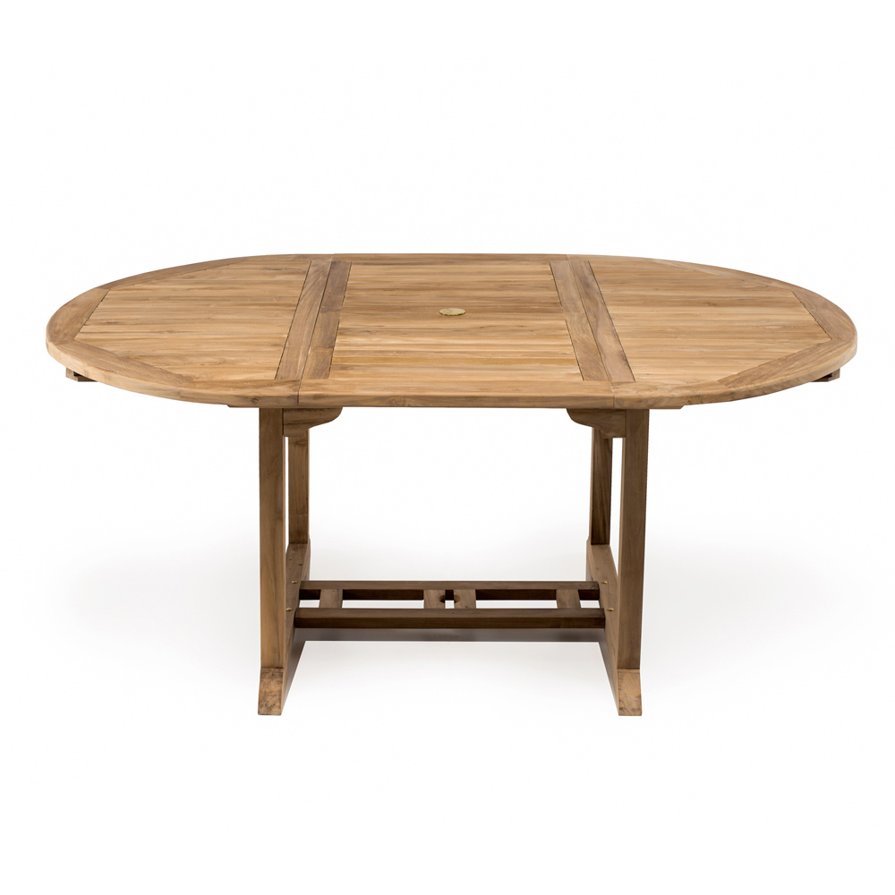 Extendable garden table in natural teak.