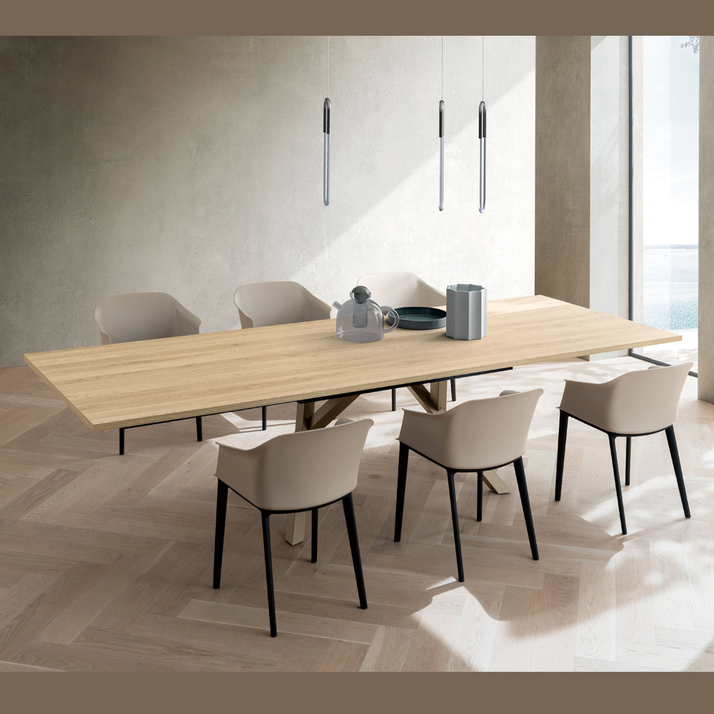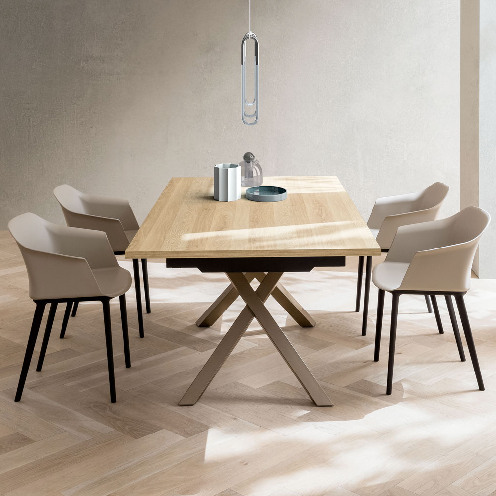 The HPL top is perfect for everyday use without sacrificing aesthetics. Thanks to the integrated extension mechanism , the table extends easily to comfortably accommodate more guests, becoming the perfect protagonist of family lunches and dinners with friends.