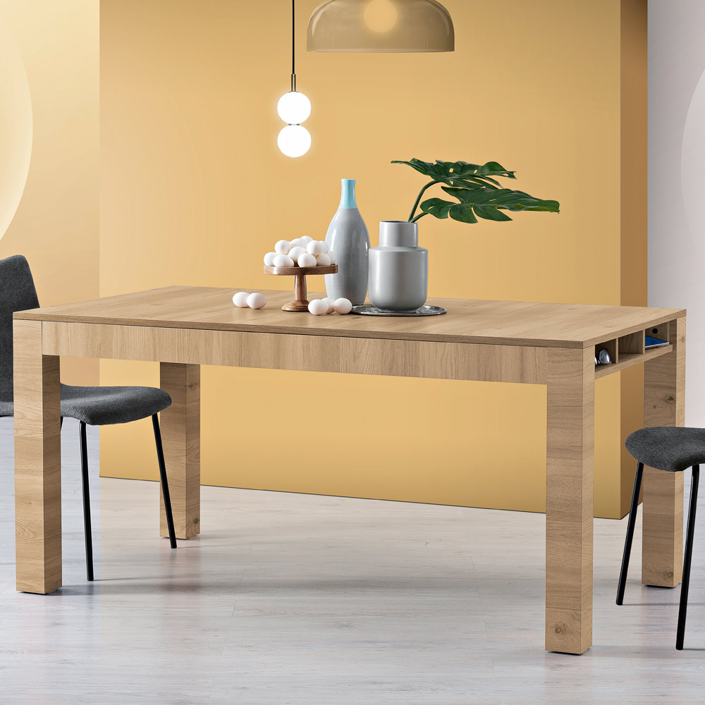 The natural warmth of wood meets the ingenuity of contemporary design in this extending table . The finishes are not only beautiful to look at, but also offer a durable surface resistant to daily use, perfect for hosting from simple morning breakfasts to refined dinners with friends.