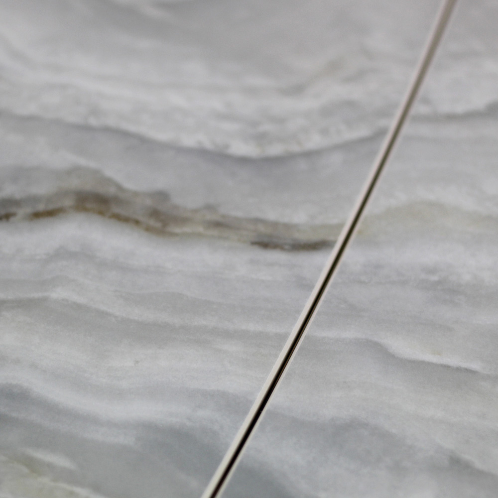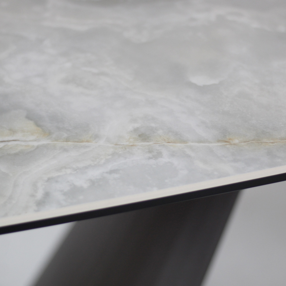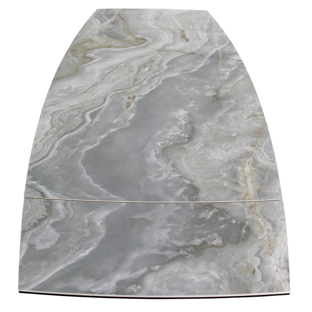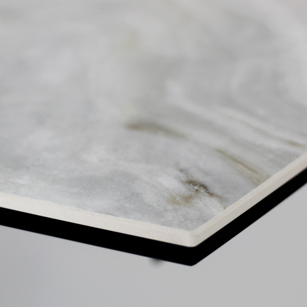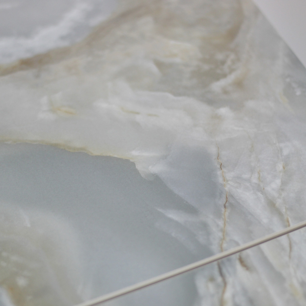 elegant, sumptuous and unique touch. Available top finishes:- champagne base, shiny veined gold calacatta top (thickness 10 mm glass + 5 mm ceramic)