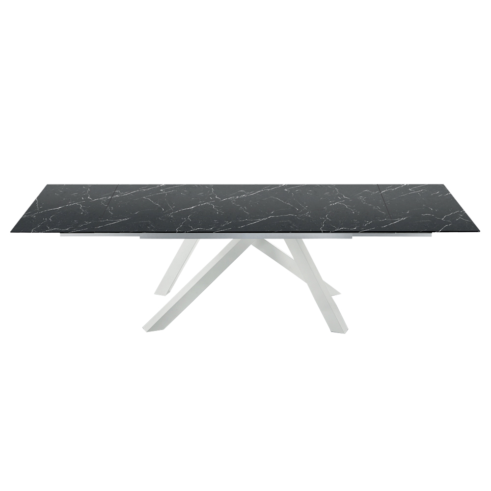 Laminam table extendable up to 278 cm with white or graphite steel base, produced in Italy.