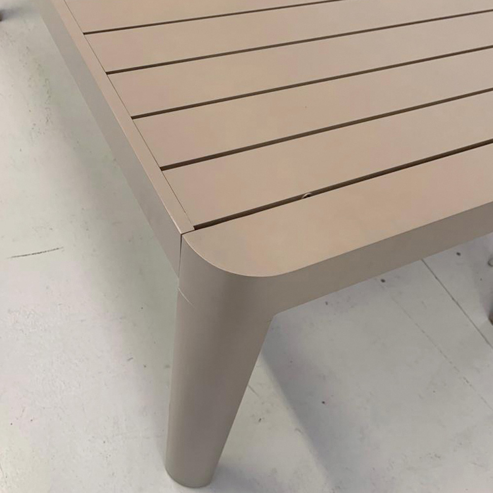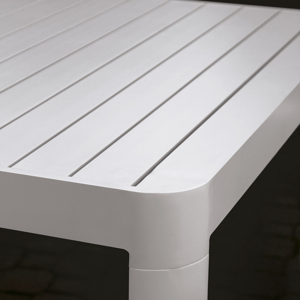 This extendable aluminum table is an example of elegant and functional design perfect for outdoors. Its finish and clean lines evoke a feeling of modernity and spaciousness, offering an inviting surface for any occasion, from family meals to dinners with friends. The aluminum structure not only guarantees visual lightness , but is also synonymous with sturdiness and resistance .