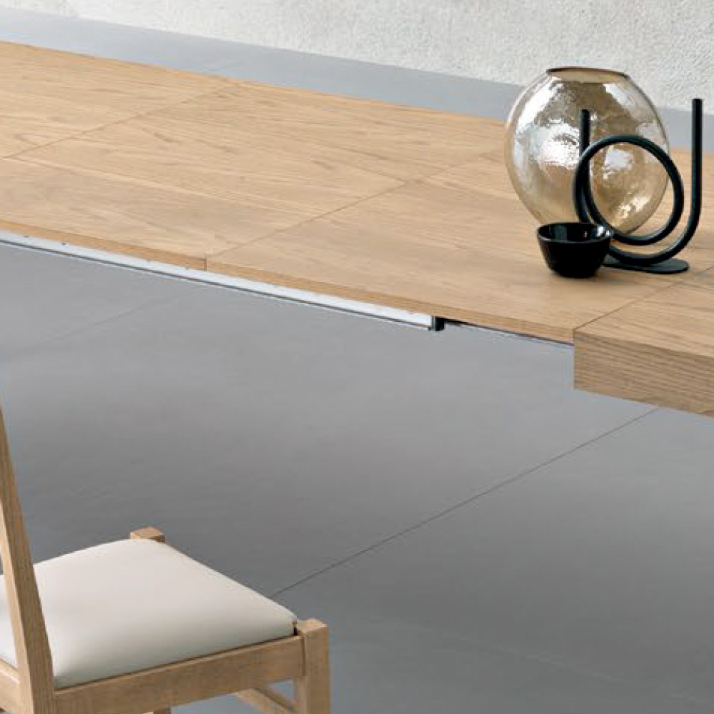 Elegant, practical and versatile, the table adapts perfectly to different interior configurations, always offering an air of discreet sophistication.