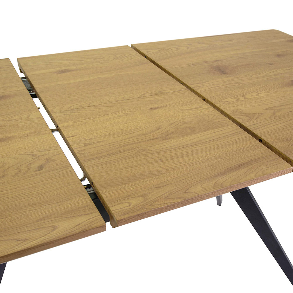Functionality and elegance in a single extendable table! This table combines a solid and modern black powder-coated metal frame with a warm and welcoming natural wood-effect MDF top .