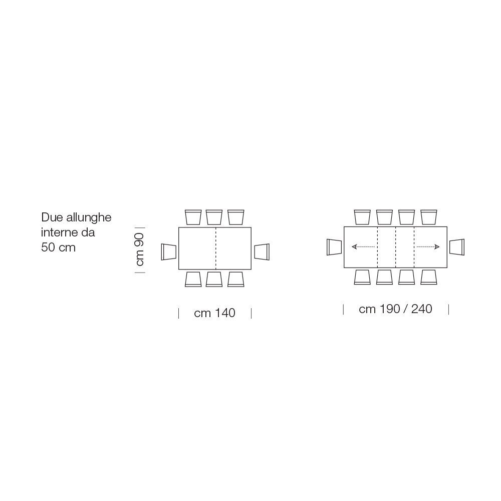 - L 140 (240) x D 90 x H 77 cm 10 seater extendable with two internal extensions of 50cm each;