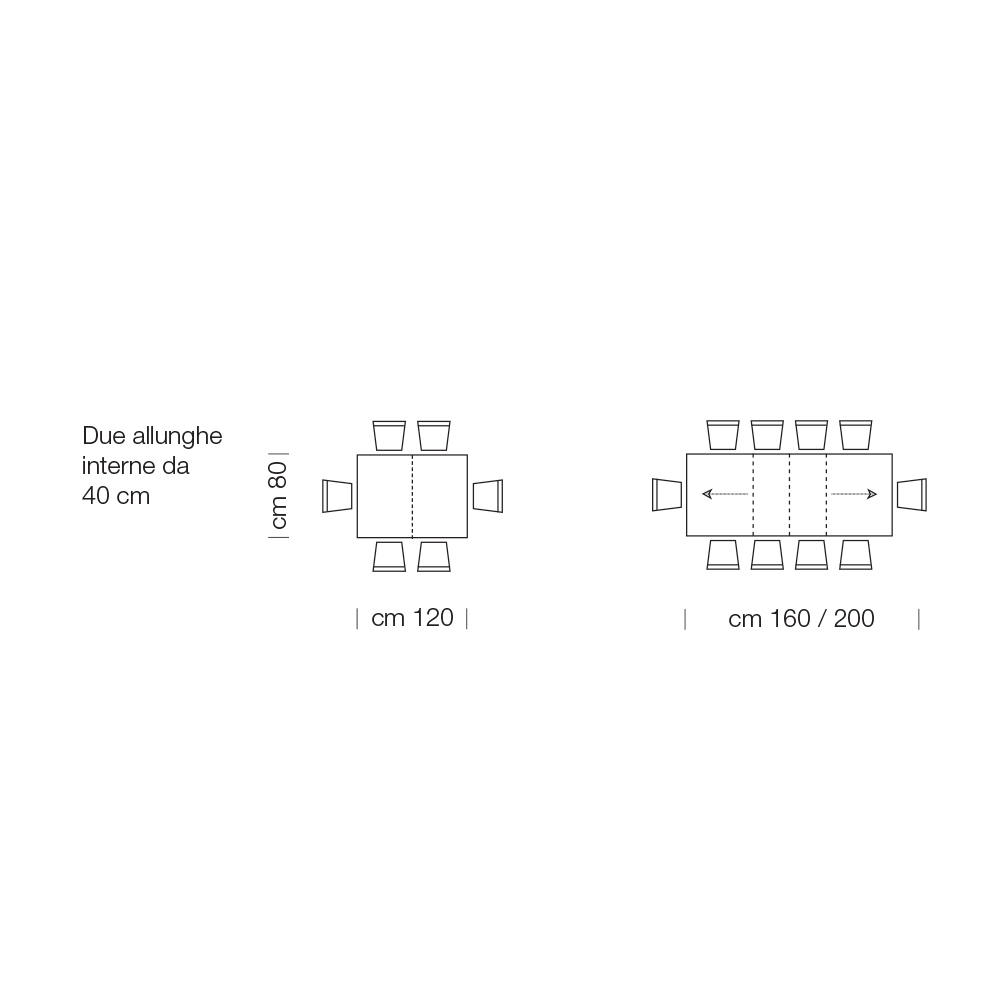 - L 120 (200) x D 80 x H 77 cm 10 seater extendable with two 40cm internal extensions;