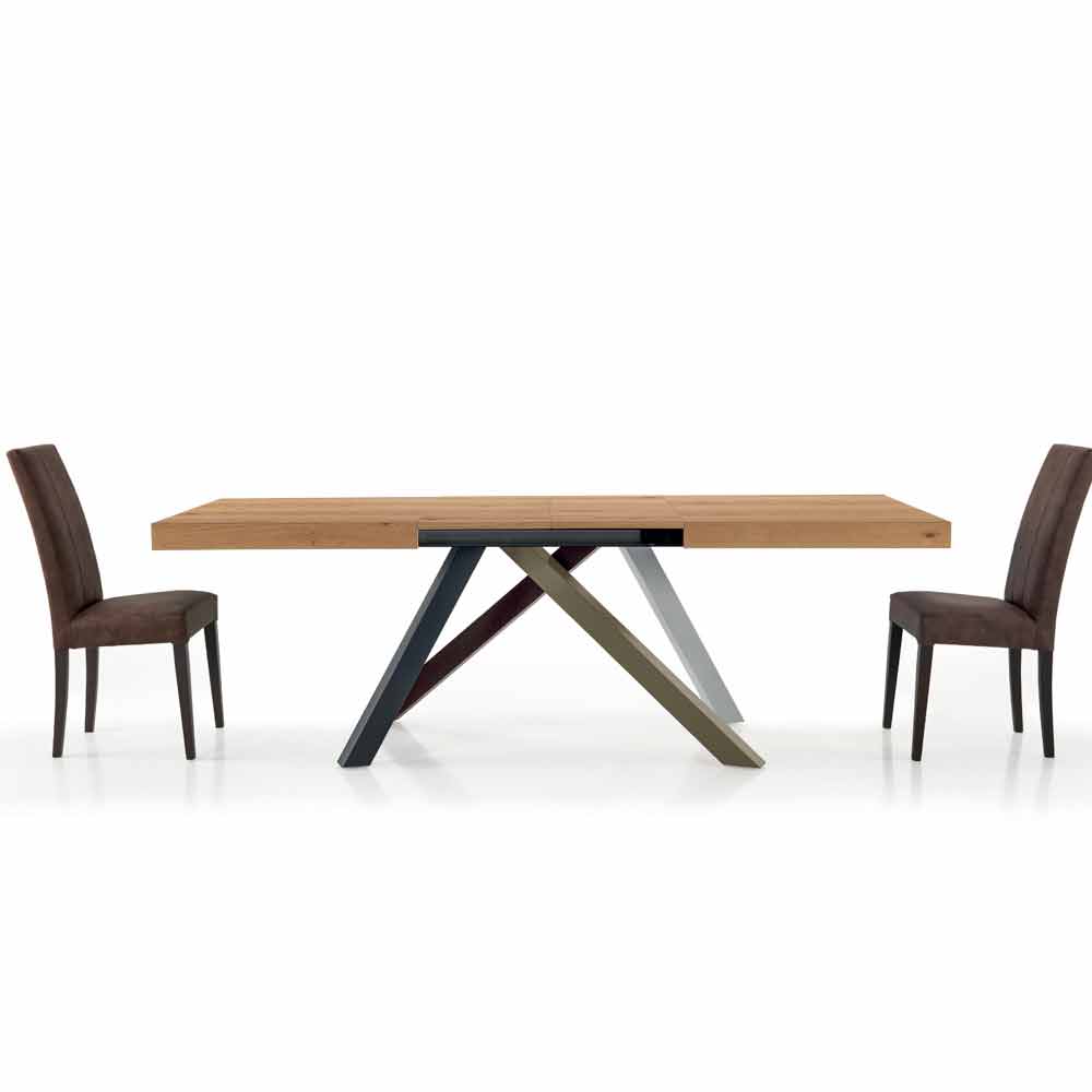 Extendable dining table up to 450 cm with laminated wood top and steel base made in Italy.
