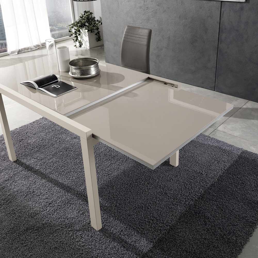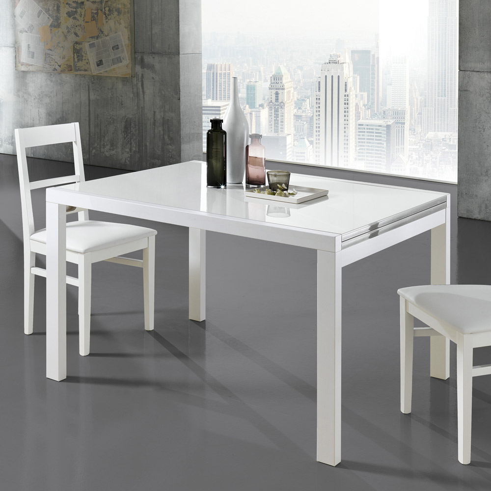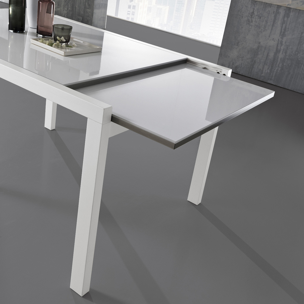 Extendable dining table up to 240 cm made in Italy with a matt lacquered wooden structure and an elegant glass-effect lacquered wooden top. Its practical opening mechanism increases its surface area making it able to comfortably accommodate many people. A product with a unique style that manages to rigorously combine design, current affairs and technology; every single element is strongly characterized and equipped with an original and highly defined personality.