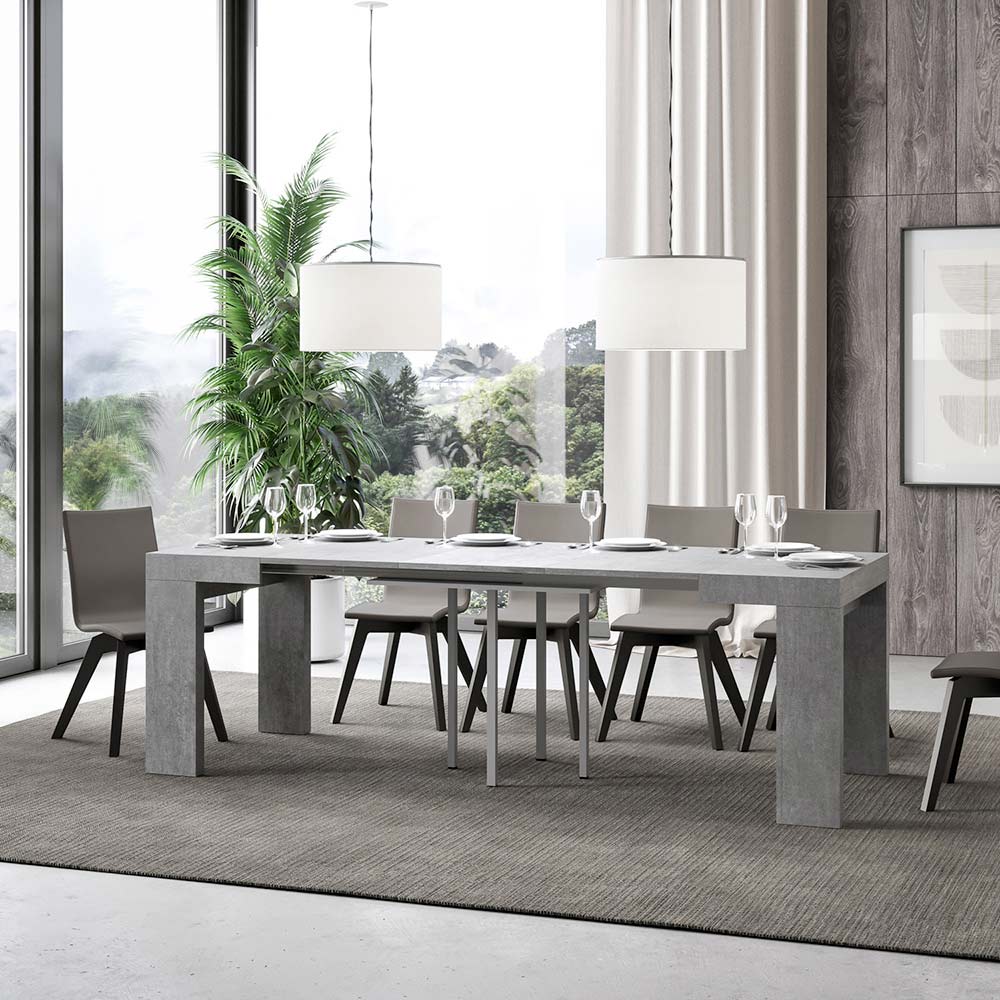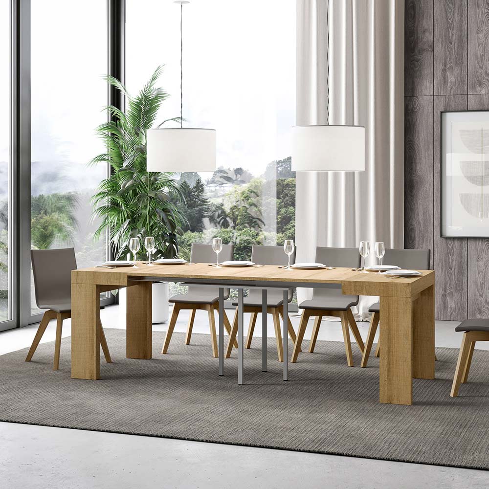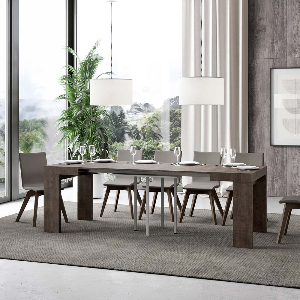 Made in Italy. The extensions can be inserted progressively, allowing for intermediate length configurations, so you can choose whether to use it with one, two or three extensions according to your space needs. When not in use, the extensions should be stored elsewhere and do not find a place within the table structure.