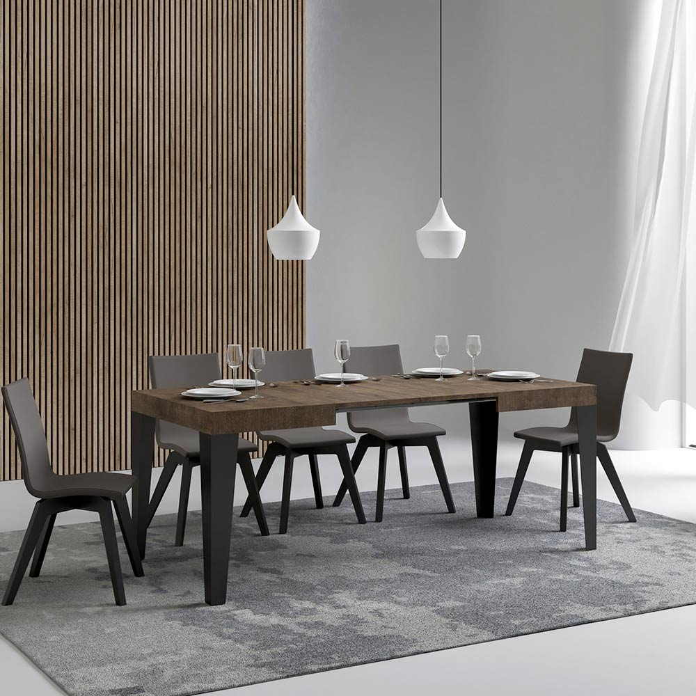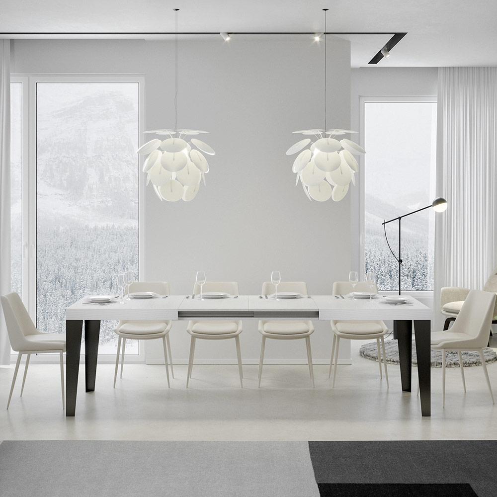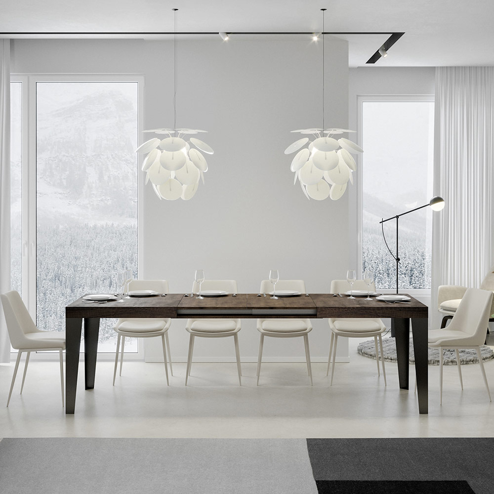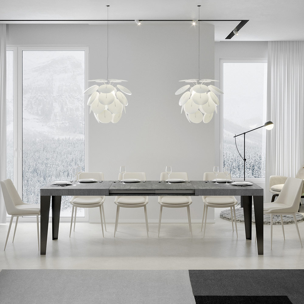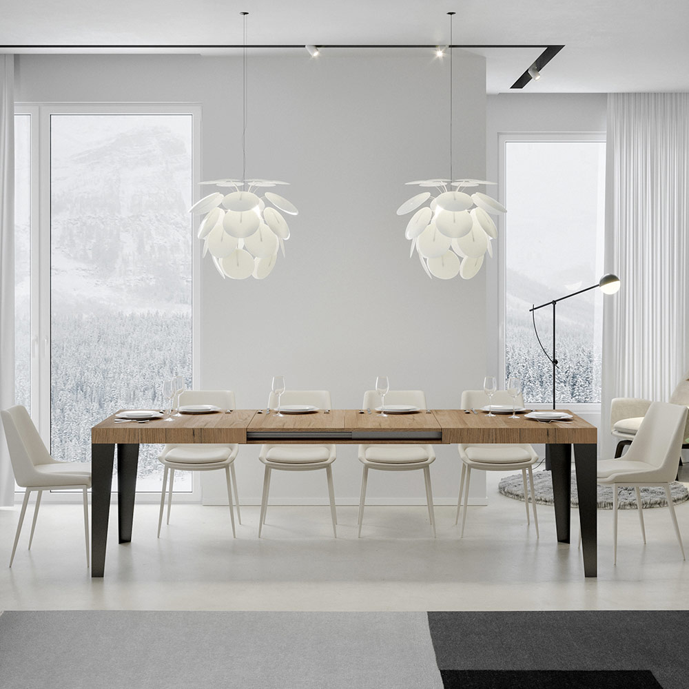 The extension system with telescopic aluminum rails makes the table stable and sturdy even when fully extended, without the need for additional supports.