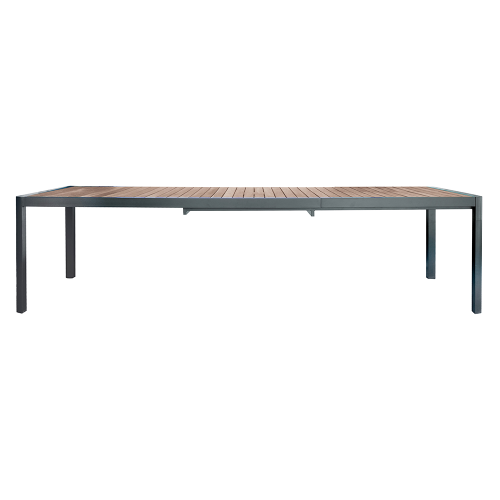 sliding legs. Elevate your outdoor space with this teak wood and aluminum extending table . Perfect for the garden, terrace or patio, this table combines modern design and versatility , offering an experience of uncompromising elegance and functionality.