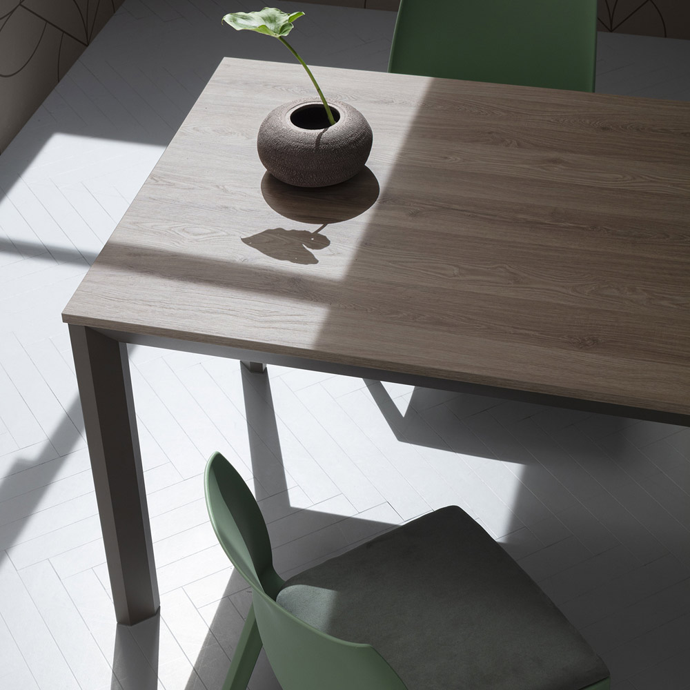 Extendable kitchen table with hpl top and aluminum legs Made in Italy.