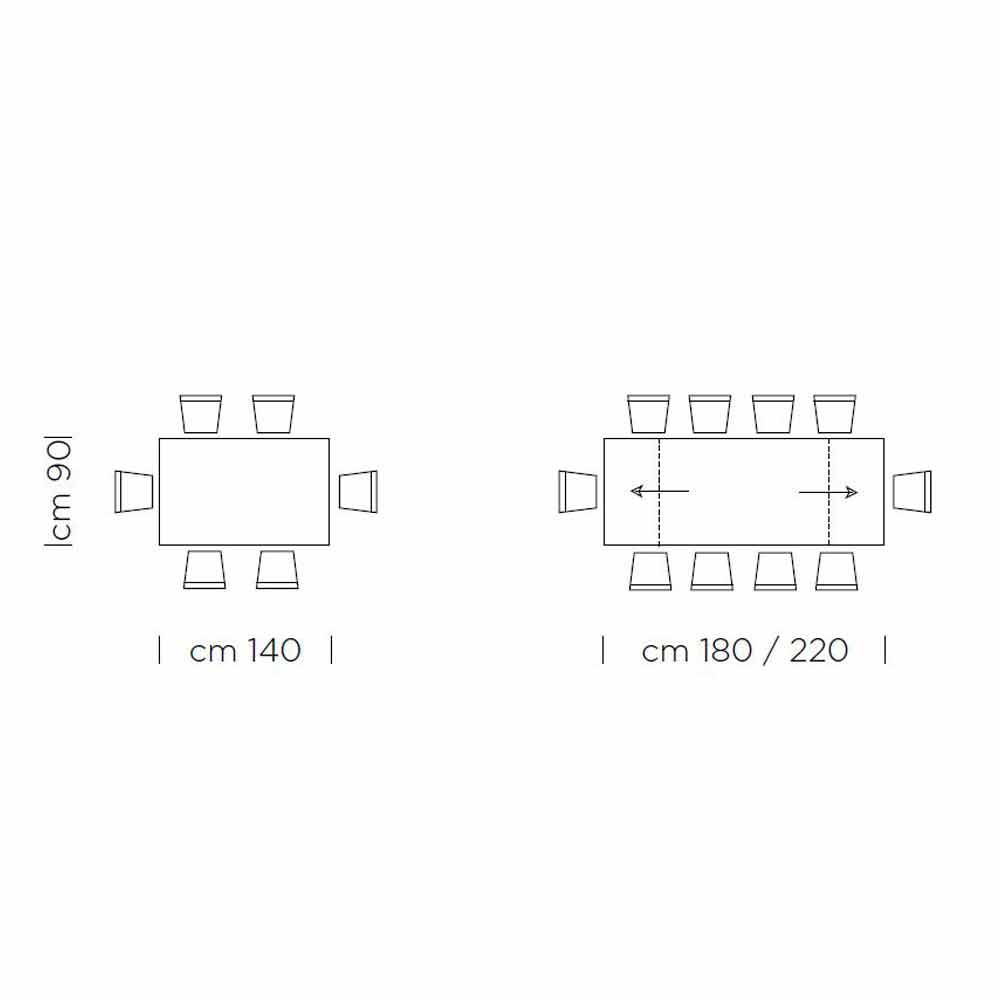 • L 140/220 x D 90 x H 75.5 10 seats (2 40 cm extensions);