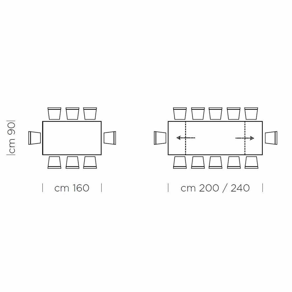 • L 160/240 x D 90 x H 75.5 12 seats (2 40 cm extensions)