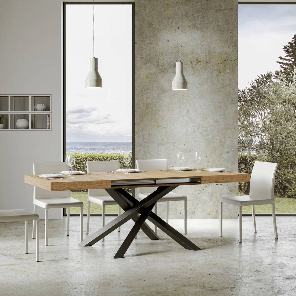 Extendable table made of microparticles of wood and iron made in Italy