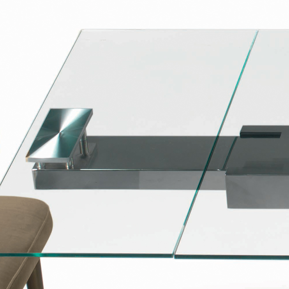 Thanks to the shape of the base and the available top finishes, the table is capable of giving a