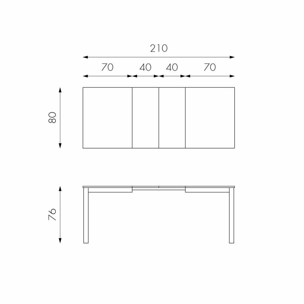Denisio is an extendable table up to 210 cm with dimensions: l.130 / 210 x d.80 x h.76 cm.
