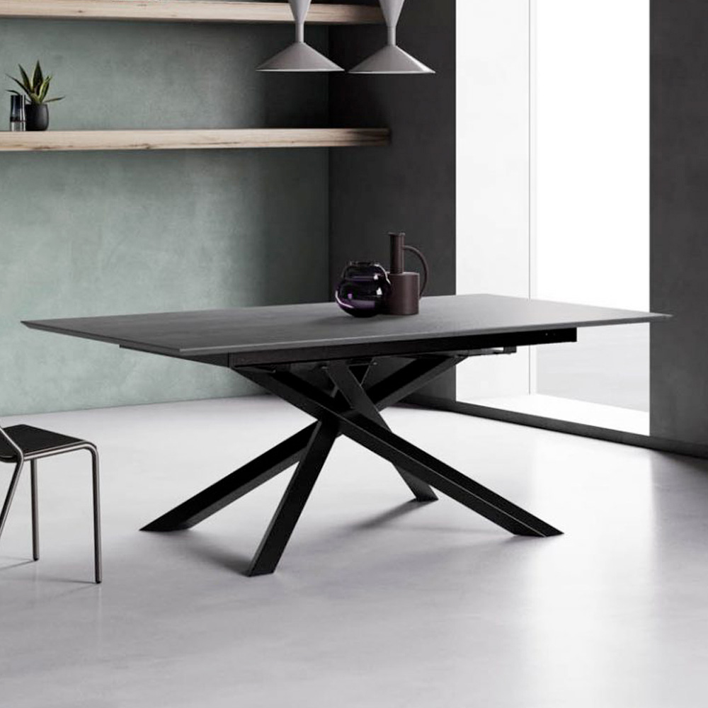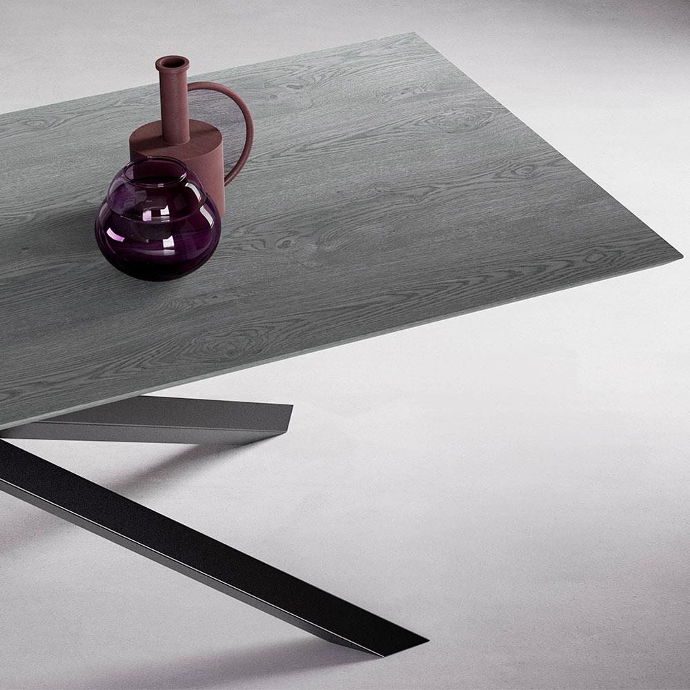 Extendable table with gray oak top and graphite legs Made in Italy.