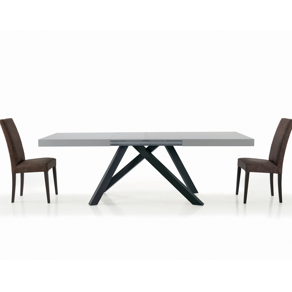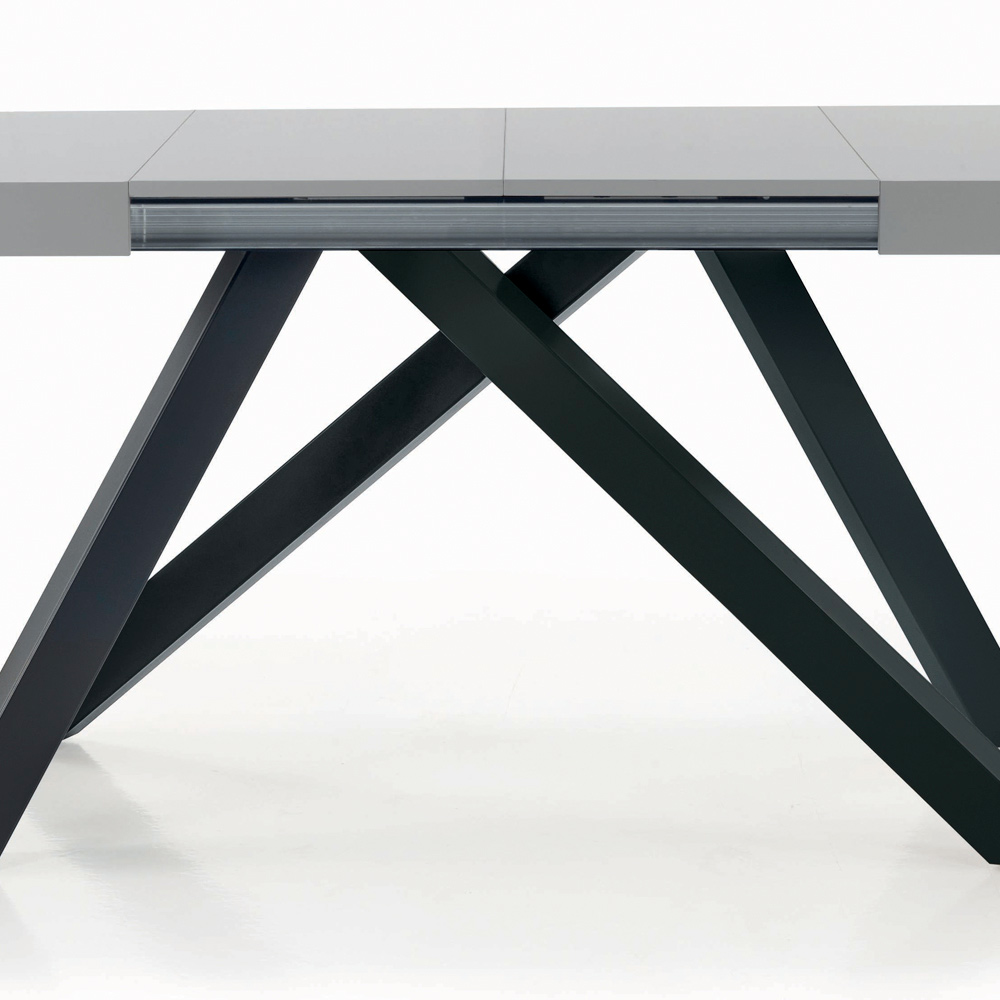 Extendable living room table with synchronized central opening (internal extensions), matt white laminate top