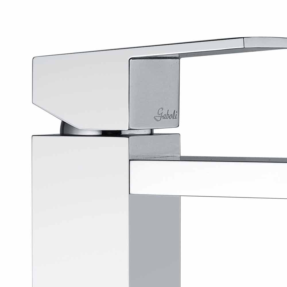 Extended mixer without waste for bathroom sink in chrome-plated brass complete with open Kerox Ø 25 mm cartridge. Squared lines and well-defined angles give an extremely modern and refined touch to the product and to the entire room, enriching it with style and a completely new taste. Its simplicity and the wonderful chrome finish allow this tap to become part of any decor in an impeccable way, resulting discreet and elegant.