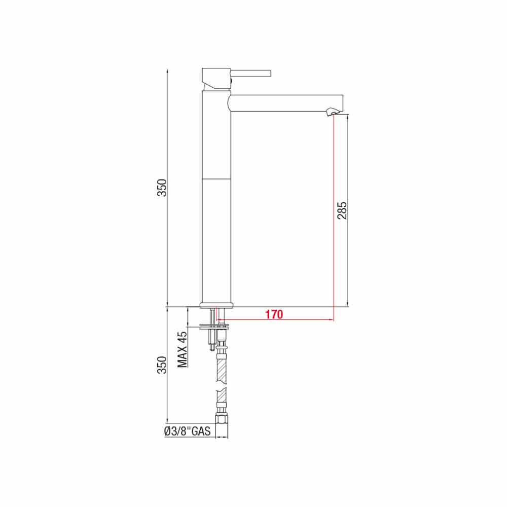 Extended mixer for bathroom sink without waste in brass Made in Italy.