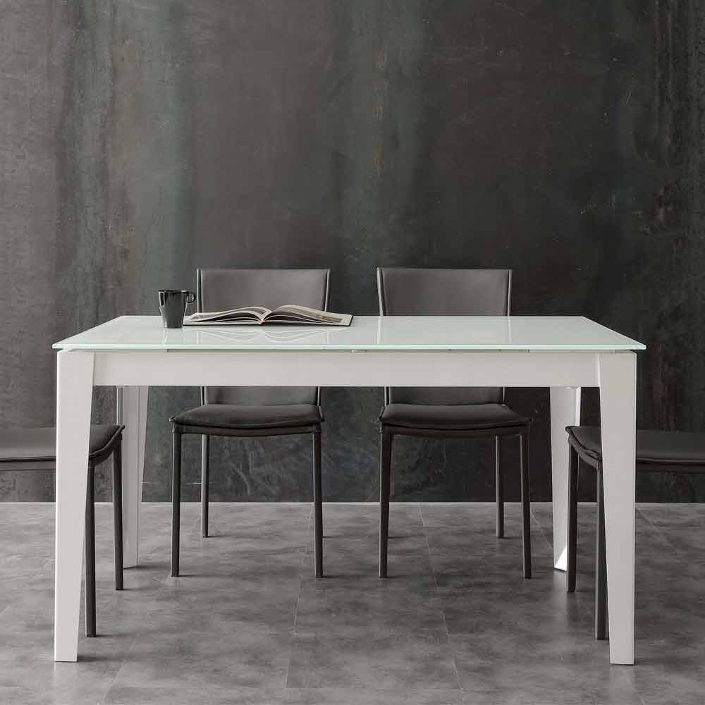 Extending table Baltimora, with tempered glass table top, modern design.