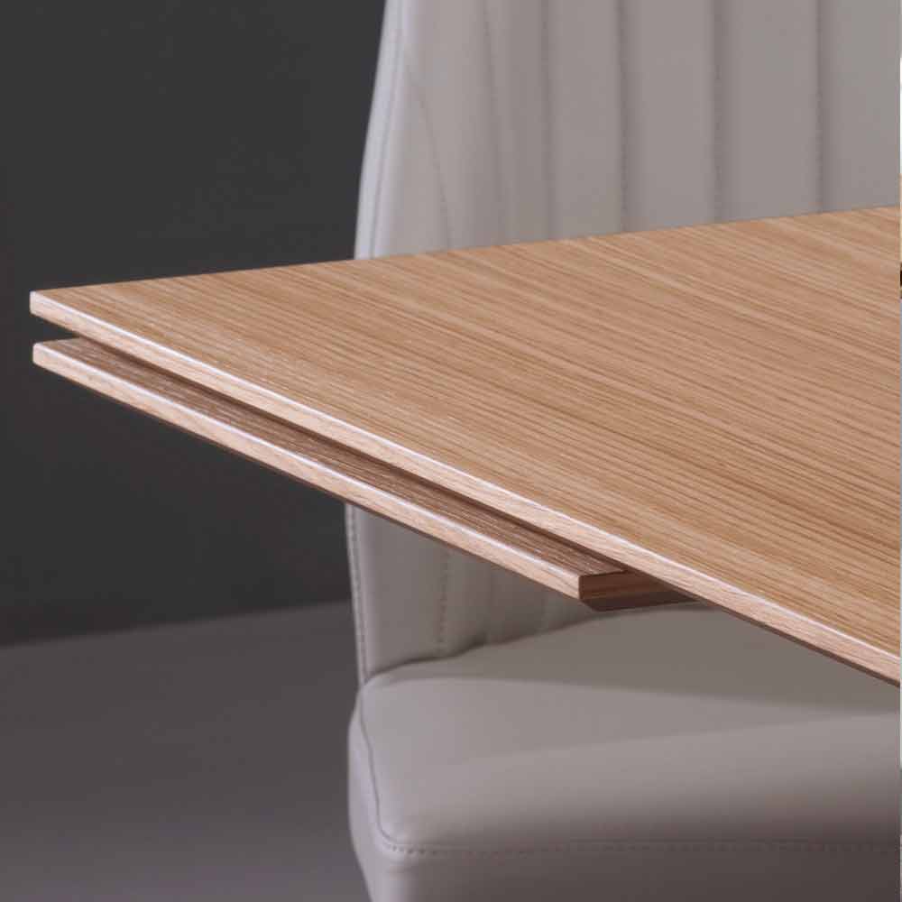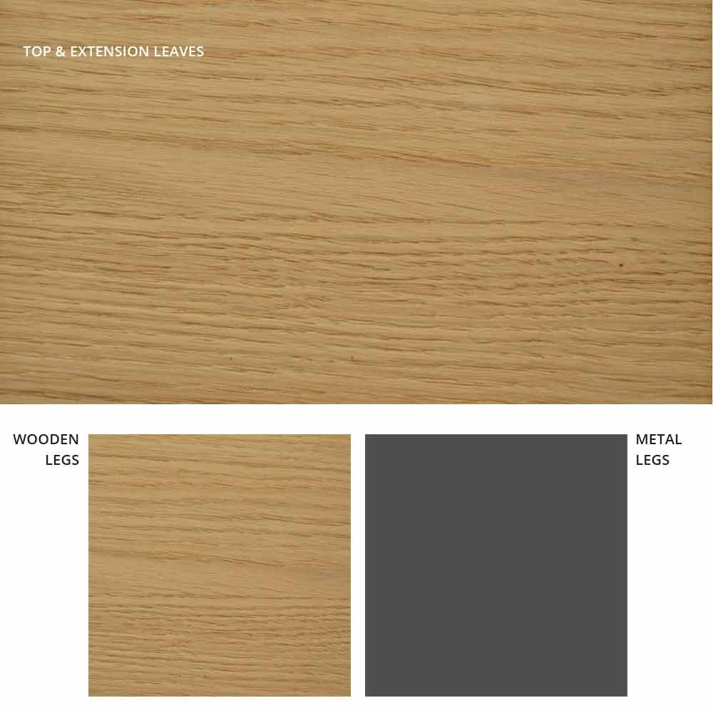 Daryl's top and extensions are veneered in natural oak; the top also features a 45° flared edge.