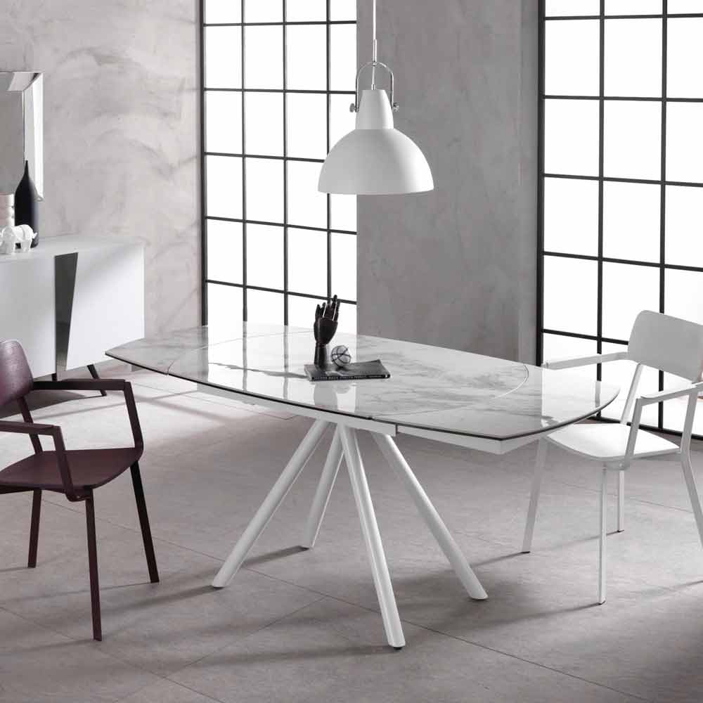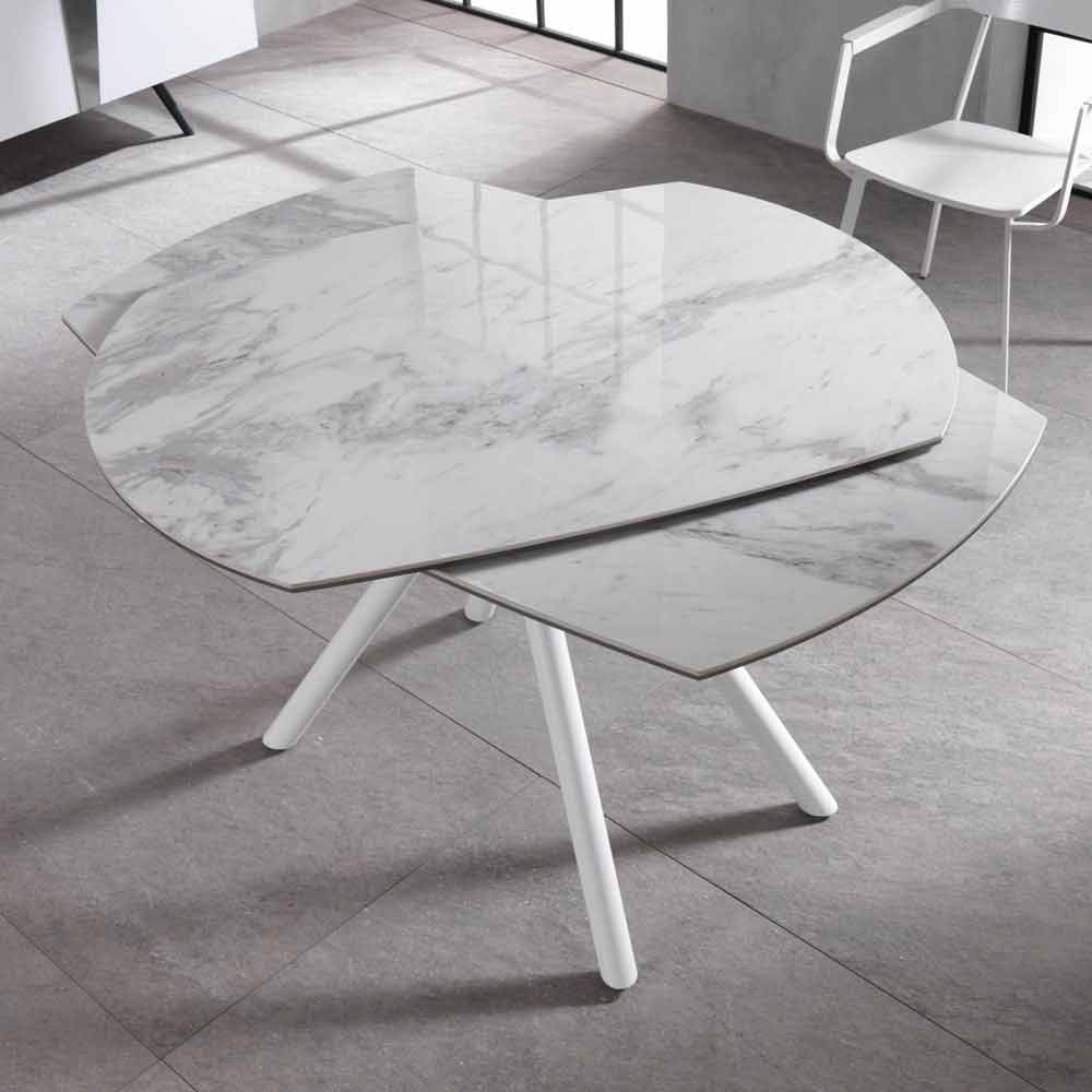 Modern extendable table with marble effect ceramic top, Lozzolo