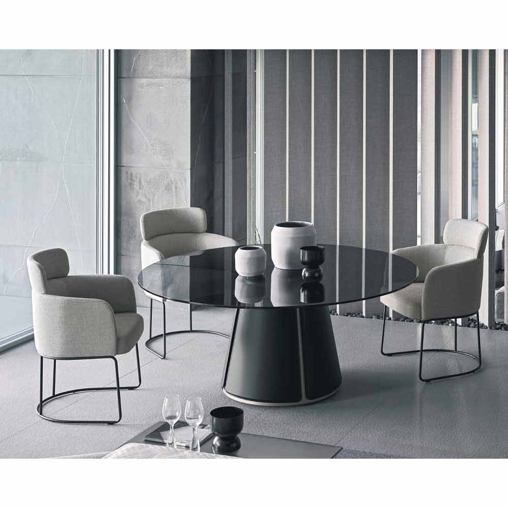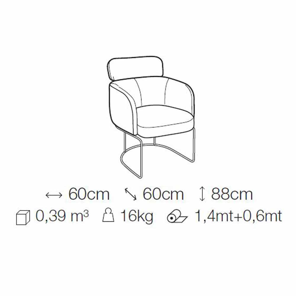 fabric (not removable). Soft and enveloping shapes give life to a particularly modern and exclusive furnishing solution. Thanks to its curved shape, the body recreates the feeling of a real hug, managing to give life to a small nest in which to be pampered and relax to spend wonderful moments during lunches and dinners with friends.